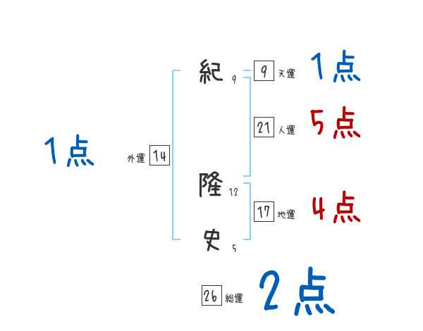 紀隆史さんの画数の鑑定結果