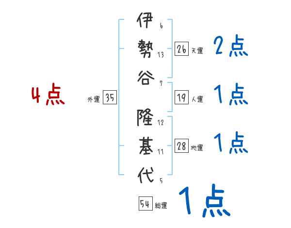 天運![]() | 伊勢谷隆基代さんの天運は26画の2つ星!波瀾万丈かも。信頼できる人を大事にしましょう。 家系が持つ宿命的な運勢を表します。祖先から受け継いだ苗字ですので自分の力が及びません。家柄を象徴します。 |