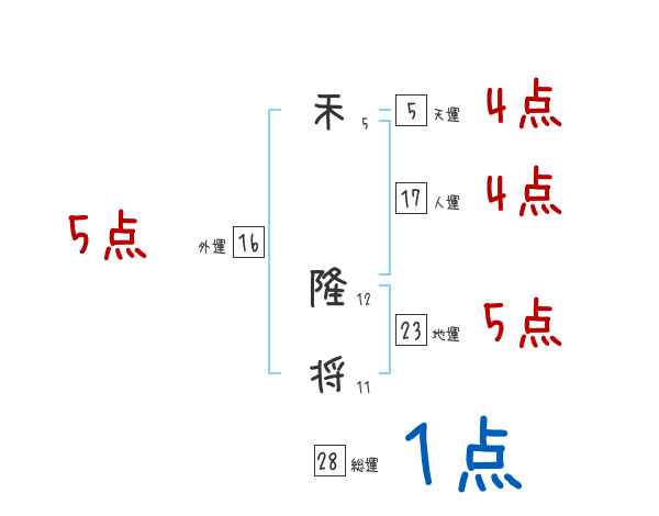 禾隆将さんの画数の鑑定結果