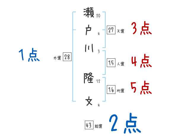 瀬戸川隆文さんの画数の鑑定結果