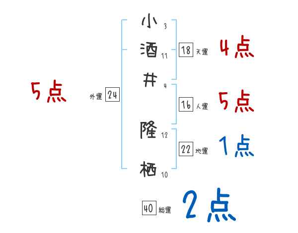 家系が持つ宿命的な運勢を表します。祖先から受け継いだ苗字ですので自分の力が及びません。家柄を象徴します。