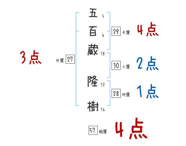 五百蔵隆樹さんの画数の鑑定結果