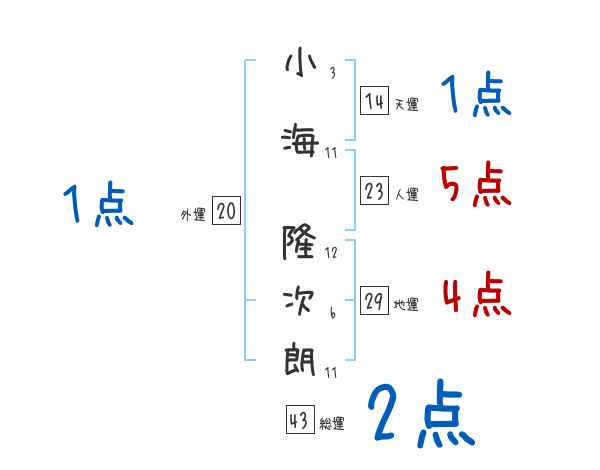 小海隆次朗さんの画数の鑑定結果