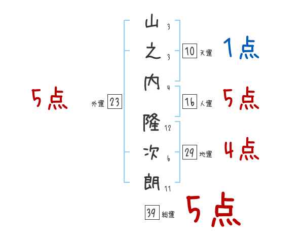 山之内隆次朗さんの画数の鑑定結果