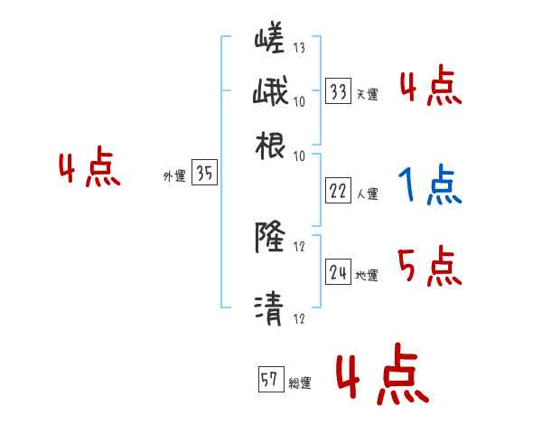 嵯峨根隆清さんの画数の鑑定結果