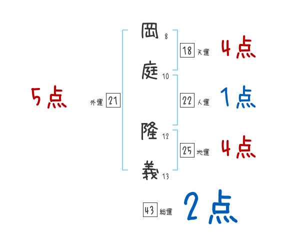 岡庭隆義さんの画数の鑑定結果