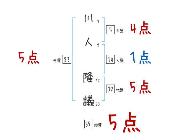 川人隆議さんの画数の鑑定結果