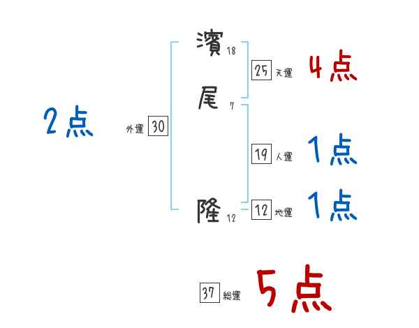 外運![]() | 濱尾隆さんの外運は30画の2つ星!浮き沈みの激しさに注意しましょう。 生活面を象徴する運勢です。外部から受ける影響力を表し、結婚運、家庭運や職場、環境への順応性を表します。 |
