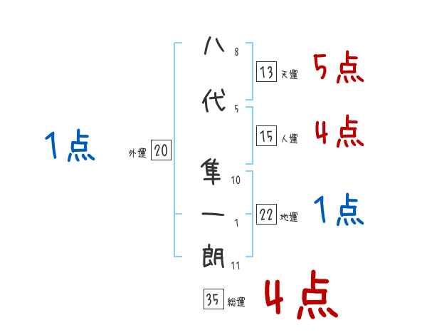八代隼一朗さんの画数の鑑定結果