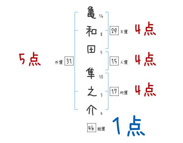 亀和田隼之介さんの画数の鑑定結果