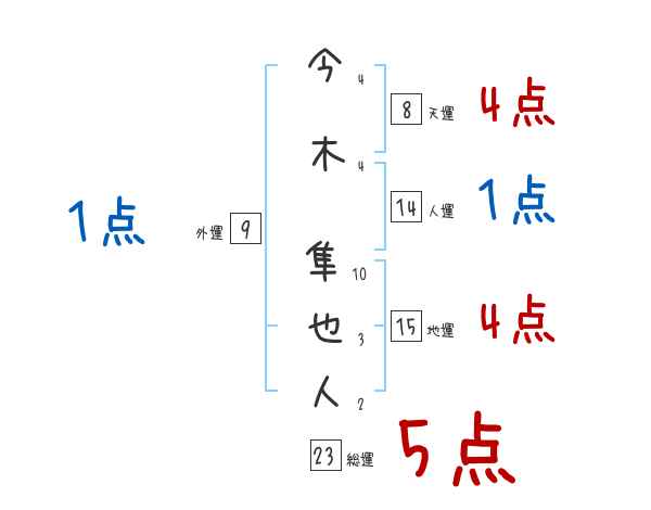 総運![]() | 今木隼也人さんの総運は23画の5つ星!想像力に優れ活力がある。一代で成功し名誉を手に入れる。 あなたの人生を表す1番重要な運勢です。生涯を通じて影響する総合運となり、主に50歳以降の晩年期に影響を及ぼします。 |