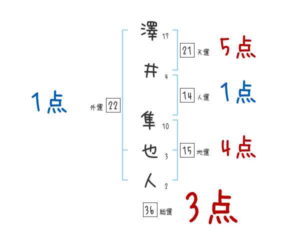 天運![]() | 澤井隼也人さんの天運は21画の5つ星!統率力がある。独立し成功する。名誉を手に入れる。 家系が持つ宿命的な運勢を表します。祖先から受け継いだ苗字ですので自分の力が及びません。家柄を象徴します。 |