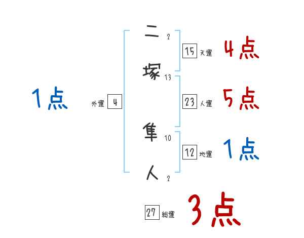 二塚隼人さんの画数の鑑定結果