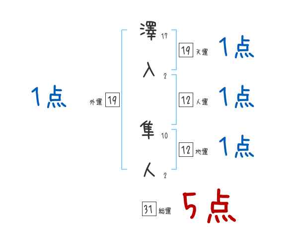 総運![]() | 澤入隼人さんの総運は31画の5つ星!社交性があり判断力に優れる。順風満帆な人生で円満な生活。 あなたの人生を表す1番重要な運勢です。生涯を通じて影響する総合運となり、主に50歳以降の晩年期に影響を及ぼします。 |