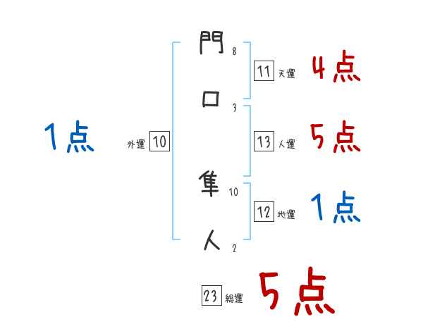 天運![]() | 門口隼人さんの天運は11画の4つ星!着実に富や地位を得る幸運な人生。 家系が持つ宿命的な運勢を表します。祖先から受け継いだ苗字ですので自分の力が及びません。家柄を象徴します。 |