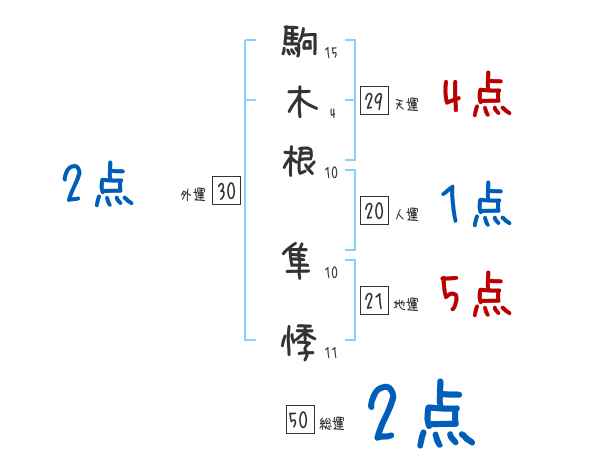 外運![]() | 駒木根隼悸さんの外運は30画の2つ星!浮き沈みの激しさに注意しましょう。 生活面を象徴する運勢です。外部から受ける影響力を表し、結婚運、家庭運や職場、環境への順応性を表します。 |
