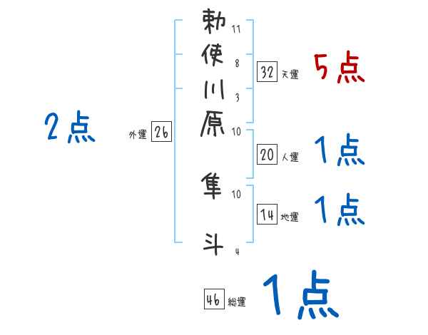天運![]() | 勅使川原隼斗さんの天運は32画の5つ星!柔軟性があり成功する。チャンスが多く金運が良い。 家系が持つ宿命的な運勢を表します。祖先から受け継いだ苗字ですので自分の力が及びません。家柄を象徴します。 |