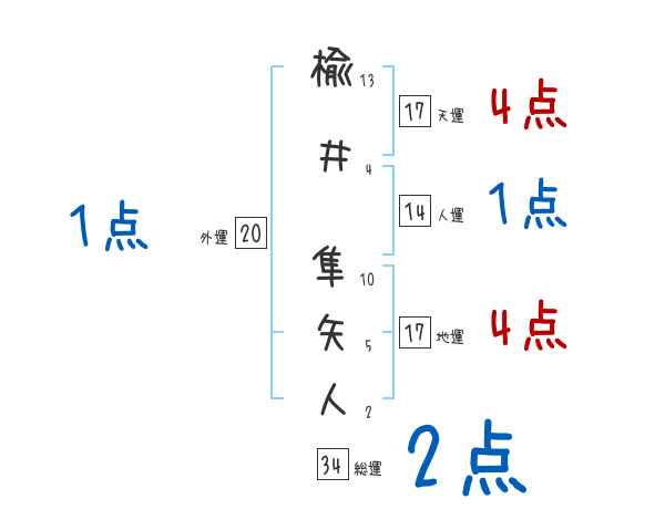 楡井隼矢人さんの画数の鑑定結果