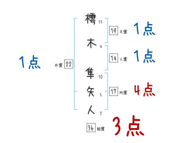 総運![]() | 樗木隼矢人さんの総運は36画の3つ星!先見性が豊かです。多少神経質で苦労することも。 あなたの人生を表す1番重要な運勢です。生涯を通じて影響する総合運となり、主に50歳以降の晩年期に影響を及ぼします。 |