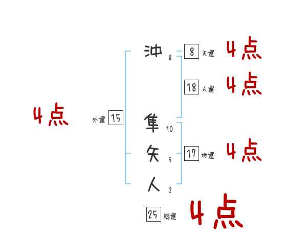沖隼矢人さんの画数の鑑定結果