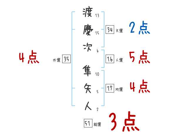 渡慶次隼矢人さんの画数の鑑定結果