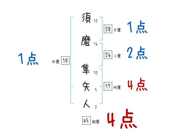 須磨隼矢人さんの画数の鑑定結果