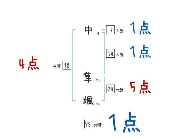 外運![]() | 中隼颯さんの外運は18画の4つ星!情熱的で剛気。忍耐力があり信頼される。 生活面を象徴する運勢です。外部から受ける影響力を表し、結婚運、家庭運や職場、環境への順応性を表します。 |