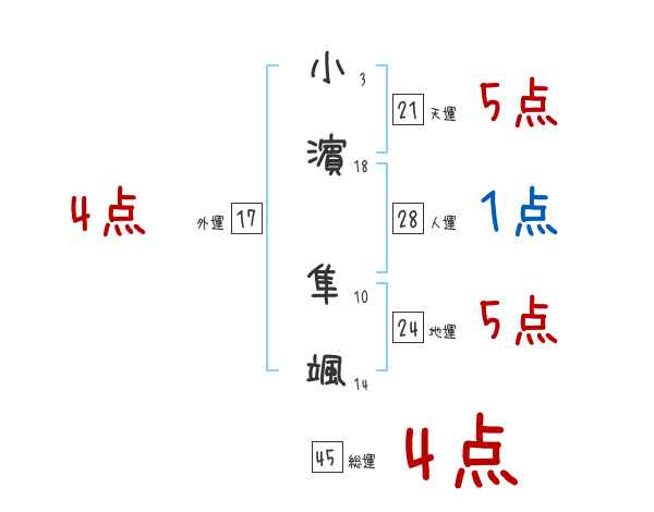 小濵隼颯さんの画数の鑑定結果