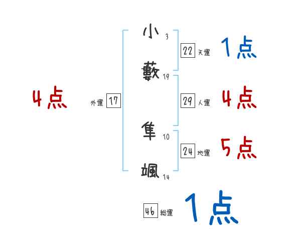小藪隼颯さんの画数の鑑定結果