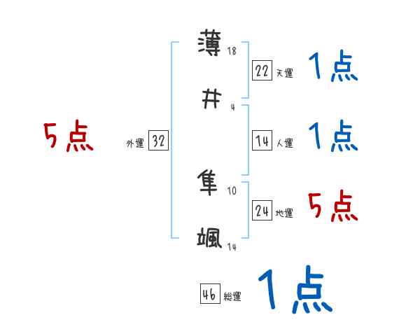 外運![]() | 薄井隼颯さんの外運は32画の5つ星!柔軟性があり成功する。チャンスが多く金運が良い。 生活面を象徴する運勢です。外部から受ける影響力を表し、結婚運、家庭運や職場、環境への順応性を表します。 |
