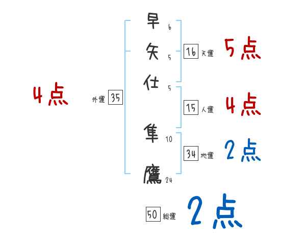 早矢仕隼鷹さんの画数の鑑定結果