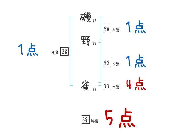 磯野雀さんの画数の鑑定結果