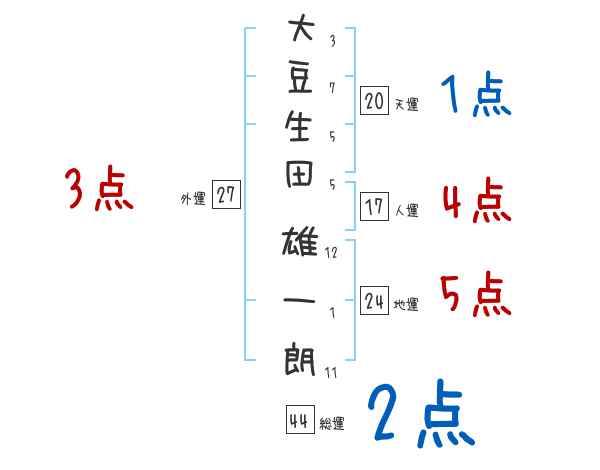 大豆生田雄一朗さんの画数の鑑定結果