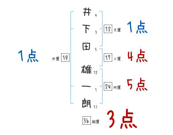 井下田雄一朗さんの画数の鑑定結果