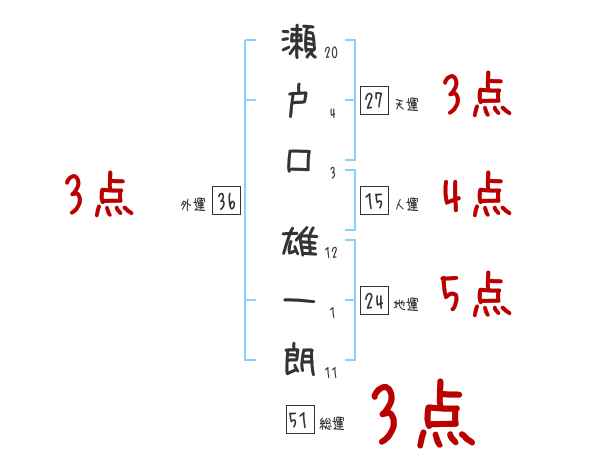 瀬戸口雄一朗さんの画数の鑑定結果
