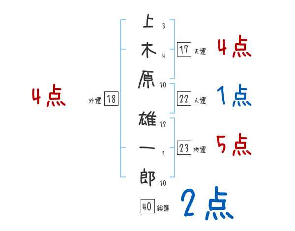 総運![]() | 上木原雄一郎さんの総運は40画の2つ星!自信過剰で物事に固執するためトラブルに注意。 あなたの人生を表す1番重要な運勢です。生涯を通じて影響する総合運となり、主に50歳以降の晩年期に影響を及ぼします。 |