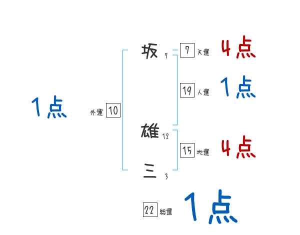 坂雄三さんの画数の鑑定結果