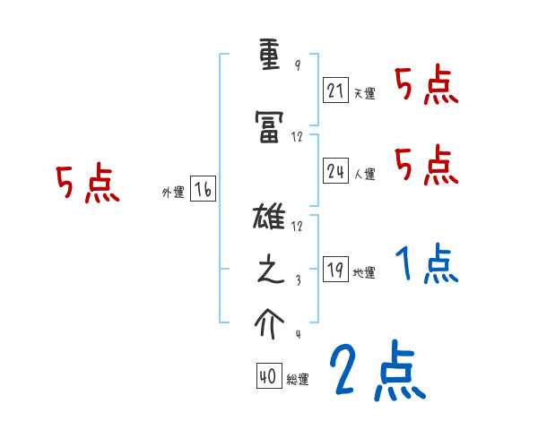 重冨雄之介さんの画数の鑑定結果