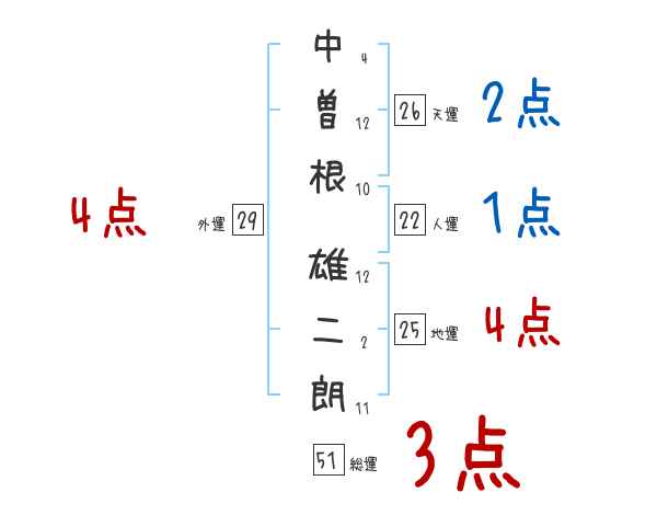 中曽根雄二朗さんの画数の鑑定結果