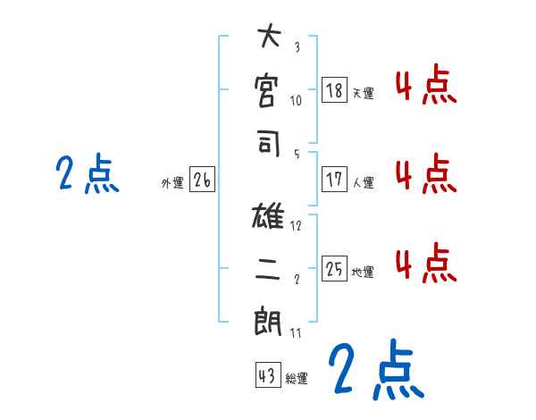 大宮司雄二朗さんの画数の鑑定結果