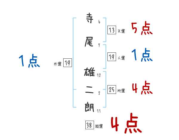 寺尾雄二朗さんの画数の鑑定結果
