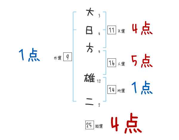 大日方雄二さんの画数の鑑定結果