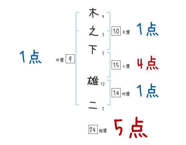 木之下雄二さんの画数の鑑定結果