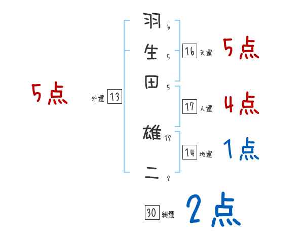 羽生田雄二さんの画数の鑑定結果