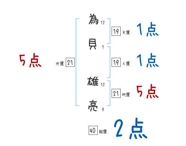 為貝雄亮さんの画数の鑑定結果