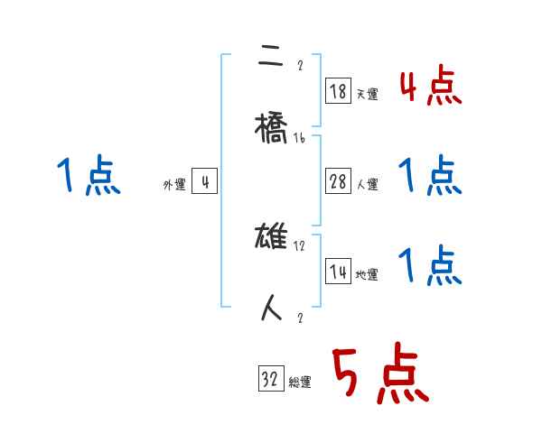二橋雄人さんの画数の鑑定結果