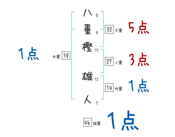 八重樫雄人さんの画数の鑑定結果