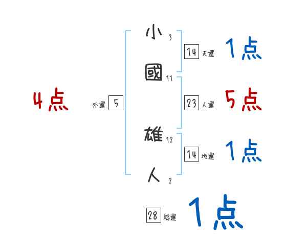 小國雄人さんの画数の鑑定結果