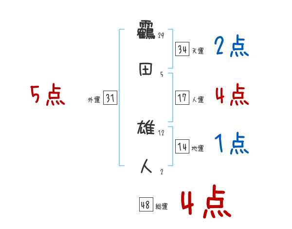 靏田雄人さんの画数の鑑定結果