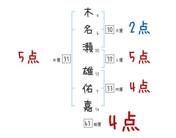 木名瀬雄佑嘉さんの画数の鑑定結果